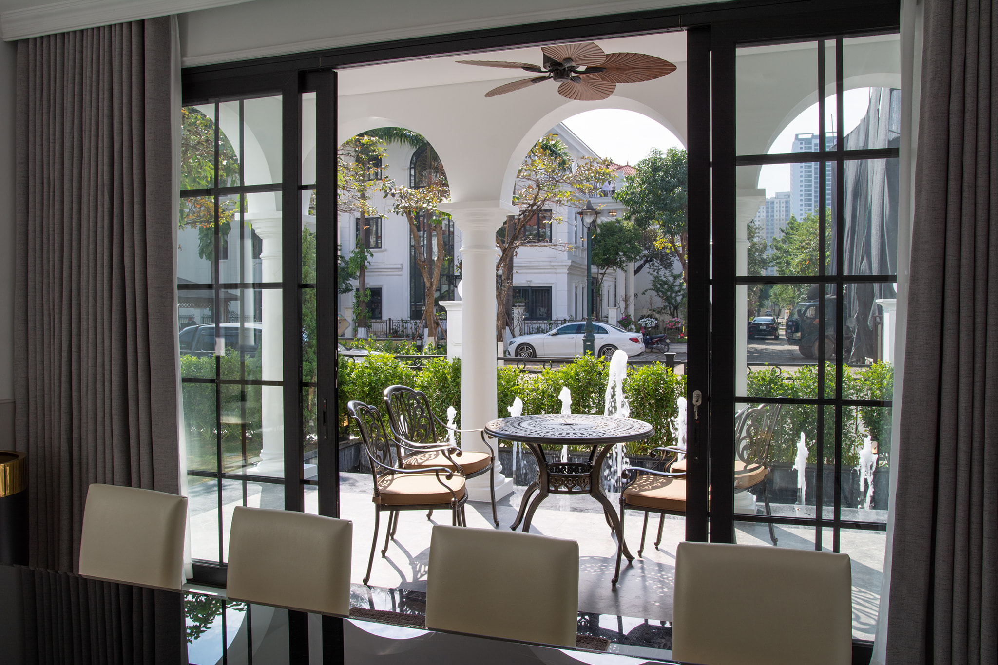 Công trình tọa lạc ngay vị trí chiến lược cửa ngõ phía Tây Thủ đô, được lấy cảm hứng thiết kế từ những biệt thự ở châu Âu cùng với gam màu trắng chủ đạo.